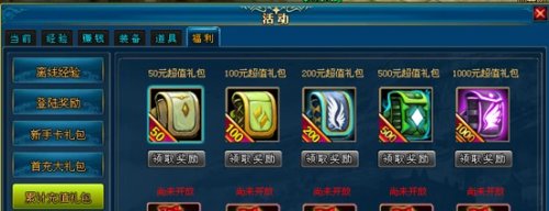 千万要留意的是,这些礼包都是可以一次性全部领取的,例如您满足了领取500元超值礼包的条件,就可以一次领取50元、100元、200元和500元共4个礼包哦!