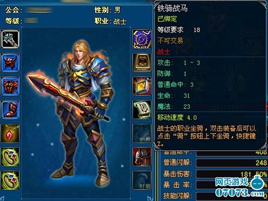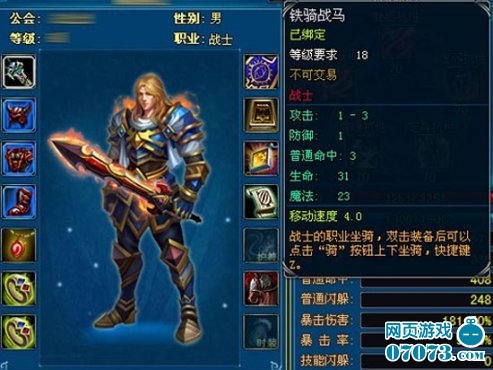 战马是战场上最为普遍而有效的坐骑,集结成阵时威力更甚。铁骑战马属于重骑兵的配备,自然是归衣甲华丽厚重的战士所有。虽然五种职业坐骑的属性相同,但从视觉效果上来看,铁骑战马体力浑厚、防御力佳,给人一种身经百战的安全感。在我国最为著名的铁骑要属金国的铁浮图了。