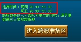 注:跨服战的比赛时间表有误,正确的比赛时间应该是:周一、周二,周四、周五、周日的晚上20:30-21:30,请大家注意!