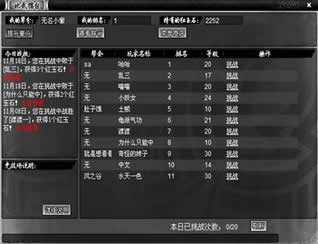 英雄传比武擂台 点击功能菜单上的”比武擂台”按钮就能进入该界面了.