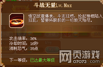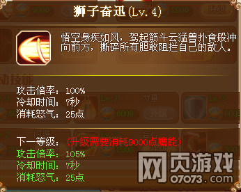 技能简介:悟空战意爆表,斗志狂燃,抡起神棍陷入狂乱,誓要将眼前的一切毁灭殆尽。