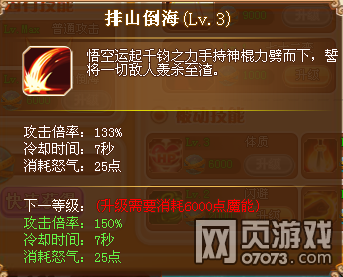 技能评价:攻击倍率100相当于1:1.可以配合斗战无量进行空中连击(这个==技能招析时候说。),推荐使用并且加满,绝对有好处。