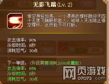 技能解析:名字不错,无影飞踹,到底有多大的威力呢?怒气消耗大,我试了一次,连击只有4下,不过发动时处于霸体状态。可用于击退敌人。伤害还行,带不带随意,不强求。
