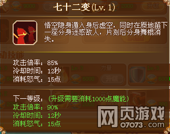 技能解析:此技能可以召唤出一个猴子,当敌人出现并靠近时攻击,连击低,貌似只有1下。但怒气值很低,总体来说伤害很低。(召唤出分身后,敌人会去打分身,分身不扣血。可以引怪,自己回血,喜欢这个特点的可以留)