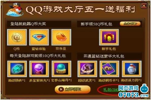 步骤七:回到游戏领奖界面点击【礼包CDK兑换】。