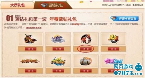 步骤九:蓝钻礼包页面,一次性开通/续费12个月蓝钻的玩家可领取《演义三国》礼包。领奖操作重复步骤七、步骤八。