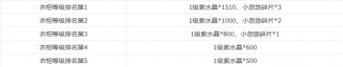 【活动内容】开服第7天,衣柜等级排名前10的玩家能获得礼包奖励(第8天凌晨4点为准,同样等级经验高为准,都一样情况下优先升级的为准)