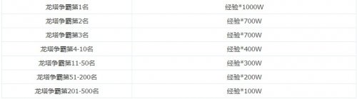 【活动内容】活动期间内,每天的龙塔争霸前500名将获得丰厚奖励