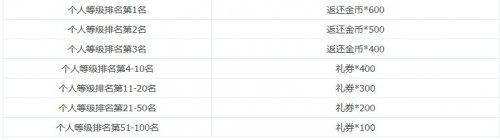 【活动内容】开服3天,等级排行榜中35级以上的玩家将获得对应奖励(以第四天凌晨排行榜数据为准)