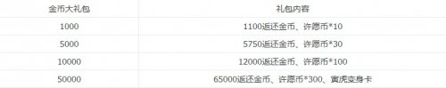 【活动内容】活动期间购买相应的金币礼包,超额返还金币、稀有最神宠登场马上送你。