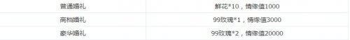 【活动内容】活动期间,玩家每天举行婚礼,即可获得鲜花、情意值奖励。