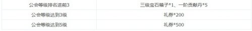 【活动内容】活动时间内,公会等级达到等级的所有玩家均可领取对应奖励一份。(排名奖励在第6天凌晨4点结算)