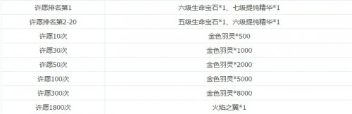 【活动内容】在活动期间许愿达到相应排名或者达到相应的许愿次数即可领奖。(排名奖励在第7天凌晨4点结算)