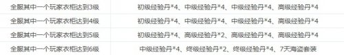 【活动内容】全服某个玩家衣柜等级达到活动要求,全服贵族玩家可免费领取奖励,伯爵以上玩家可领取额度下所有奖励(每多一人达到要求,奖励就可多领一次)