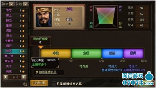 重点来了,一般抓名将要从结交名将开始,点开右下角商城旁边的名将录,结交名将(你能结交几星名将和你的声望有关),当你结交到你心仪的名将后,就开始第二步,提升好感度,赠送些珠宝(珠宝可以野地采集和商城得到),好感度达到有善后,就需要名将礼品来提升好感度了(名将礼品副本中会出或者商城得到),好感度友善就能俘虏名将了,你要先打探位置,查出名将的所在地,打探位置是需要元宝的,非RMB玩家可以拜托RMB朋友帮你打探打探。然后你就可以向名将所在的城池出征了,每次战胜,名将就会掉忠诚,想要俘虏名将,就需要对名将所在的野地或城池使用占领的模式出征,不过要注意,如果名将所在的地方被你占领了但是你又没抓到他,他就会逃跑,那你又要重新打探名将位置了。所以你要把野地和城池的空额都占满,这样就不能占领新的野地和城池了,这样反复占领目标多次,名将就会被你抓到了,抓到的名将会以俘虏的形式出现在你的将领面板里了。