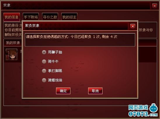 奴隶主可以对奴隶进行欺负与安抚的互动: