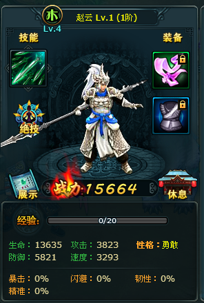 赵云性格是勇敢,减少少量攻击,增加大量防御,适合前排。