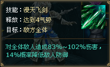 漫天飞剑:对全体敌方造成伤害,并有概率降低敌方防御。