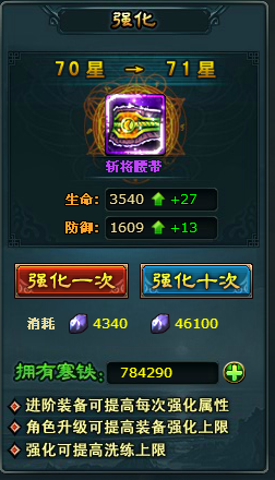 诛侯传70级腰带70升80星需要多少寒铁