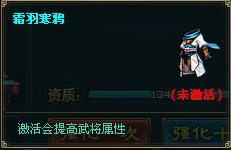 2、霜羽寒鸦:没记错的话,需要一个蓝色武将装备开启(不排除改版后升级为紫色的可能)。