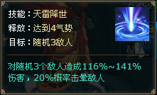 天雷降世:对随机三个敌人造成伤害,并且有概率造成眩晕。