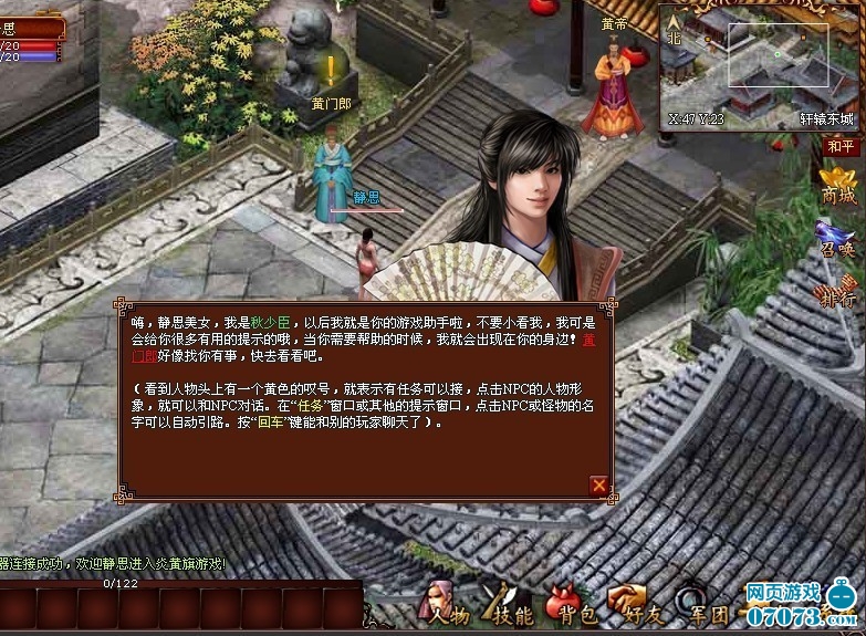 玩家完成了了解天书任务后就已经是6级啦,可以去轩辕西城找任务发布员行进行斩妖除魔的英雄事业啦!这是就需要把技能拉到任务栏里,方便使用啊!还有血瓶和加蓝的物品一并