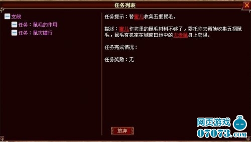 玩家可以如图4任务列表所示,同时接受相关的两个任务;也可以一个个的做,但是一定的要记得怪物掉落的东西一定要拾起,这样可以方便以后接城内NPC的任务。