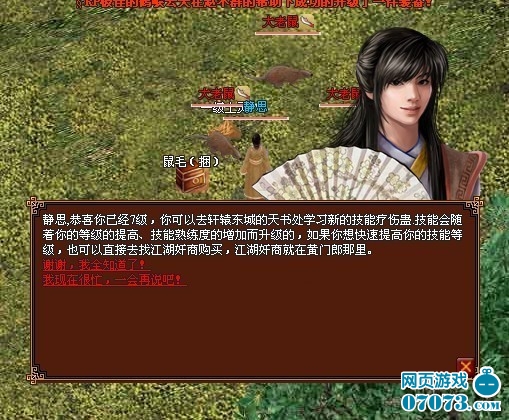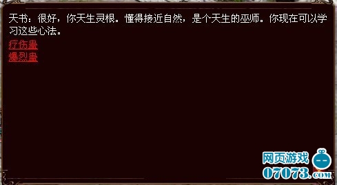 技能是随着玩家的使用而提高级别的,系统会自动升级。巫师职业升级到7级时,就可以学习第二个技能——疗伤蛊啦(如图6所示),当然如果你想更快捷的得到这些技能,可以去黄门郎出的神秘奸商购买。