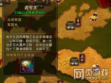 在游戏前期,也就是大家的平均等级都在44~36之间的时候,团长就应该优先抢下以下两个王土:青州和虎牢。