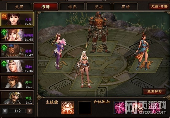 从战位置开始,每隔一定级数会开放一个位置来给玩家放置合体武将,最后一个位置开放是50级,有关武将的主技能和合体技能,在这里小编来给大家一些小建议: