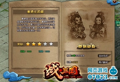 刘备和曹操青梅煮酒论天下英雄,你需要帮助刘备回答曹操的问题,如果胜利的话就可以领取奖励啦!