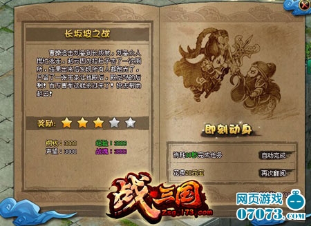 战斗任务中玩家完成战斗即可获得奖励。为了赢得长坂坡之战,玩家需要亲身参与战斗,赢得战斗后可以在三国演义界面领取对应星级的奖励。