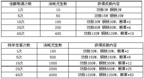 活动内容:活动期间内,玩家在酒馆使用佳酿敬酒或陈年老窖敬酒达到一定次数,即可在活动页面领取对应奖励