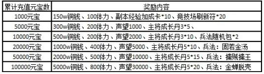 活动信息:在活动期间内,累计充值金额达到指定额度,即可领取对应奖励,每档奖励只可领取一次。