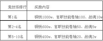 活动奖励:英雄豪杰汇聚一起,在数据互通完毕的前7天中,参加竞技场活动,并在每日竞技场奖励结算时活动前10名的奖励,即可获得额外丰厚奖励内容。