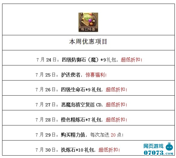为了让您更畅快的享受游戏的乐趣,我们在7月17日推出每日特惠系统,每天都有一种超低折扣的商品或玩法优惠给玩家享受!