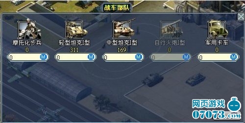 战车:防御力比较强、可以用少量的战车克制大量步兵、军事卡车可以运输中量物资、采矿车可以进行采集晶体兑换成黄金,战车战斗以后有几率升级兵种