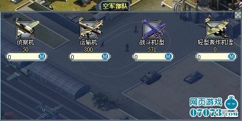 空军:移动速度较快、战斗力超强、使用侦察机可以用最短的时间获得玩家或NPC得情报、运输机可以运输大量物资和资源、,飞机战斗以后有几率升级兵种。