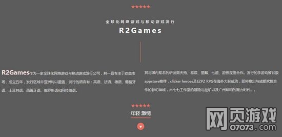 R2games的成员来自世界各地,他们年轻而富有激情。公司成立以来,R2games依托强有力的国际化背景,秉承传播文化,传递快乐的企业使命,立志成为全球领先的游戏企业。如今,R2games已经由十几人的小团队成长为将近300人的公司。拥有丰富的市场推广资源,一流的运营团队以及强大的海外品牌价值,今后,R2Games将继续努力,不断创新,打造全球一流的游戏平台。