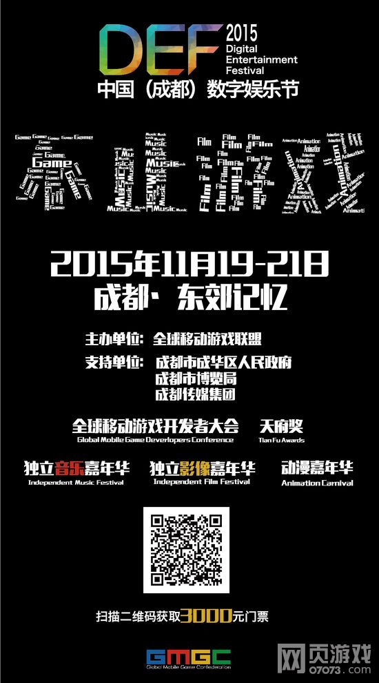 DEF2015特别选址在中国西部大开发的引擎城市、高科技产业集聚中心、同时也是新崛起的开发者之城成都举行。作为一场“互联网+泛娱乐化”的主题秀,其中的独立音乐嘉年华、独立影像嘉年华、动漫嘉年华,以及闻名海外的全球移动游戏开发者大会(GMGDC)版块共同构成了“音游”、“影游”、“漫游”等全景互动式体验内容。来自世界游戏界、音乐界、电影界、动漫界的优秀独立制作人将齐聚一堂,共同分享前沿科技带来的视听愉悦。DEF2015邀民同乐,携民同庆,共同缔造一场数字娱乐界的“APEC”盛宴。
