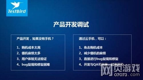 TestBird云手机的推出,将是第一款真正意义上商用的云手机,从而彻底革新了手机的概念。李伟最后表示,未来TestBird要做的,是吸引更多的开发者参与到云手机的建设上来,在医疗、教育、数据分析等各方面,全面激发云手机的潜质。现场分析人士向记者透露,云手机对TestBird乃至整个行业来说,都会有着划时代的价值。
