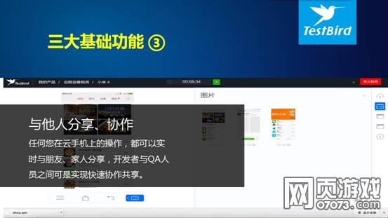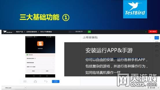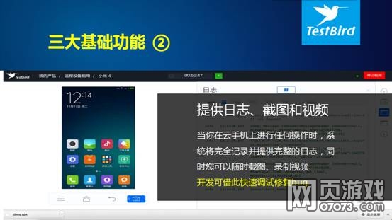 “云手机目前具备三大基础功能,一是你可以自由的安装、运行各种手机APP,包括复杂的游戏,并进行各种操作行为,如同临场真机操作一样;二是,提供运行日志、截图和视频的录制,当你在云手机上进行任何操作时,系统将完全记录并提供完整的日志,同时您可以随时截图和进行视频录制;第三,最关键的是,任何您在云手机上的操作,都可以实时与朋友、家人分享,开发者与QA人员之间可是实现快速协作共享。“关于云手机的功能,TestBird CEO 李伟在发布会现场介绍到。