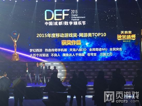 中国(成都)数字娱乐节(DEF2015)于今日在成都东郊记忆正式开幕,国际行业大咖、影音漫游各界人才齐聚,共话泛娱乐新态势下的数娱发展,天府奖颁奖盛典正在进行中。07073的前方记者在现场拍下了整个颁奖过程。
