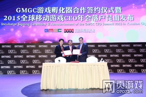 2015年11月19-21日,中国数字娱乐领域的顶级盛会——由全球移动游戏联盟GMGC主办,成都市成华区人民政府、成都市博览局、成都传媒集团鼎力支持的“中国(成都)数字娱乐节(DEF2015)“在成都·东郊记忆盛大举行。21日,全球移动游戏开发者大会GMGDC举行第二天,首先进行了GMGC游戏孵化器合作签约仪式暨2015全球移动游戏CEO年会落户昆山发布仪式。