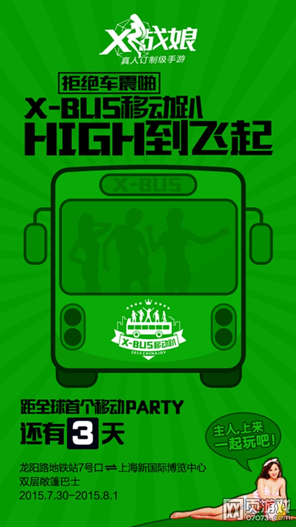 《X战娘》X-bus移动趴除了能近距离接触比基尼showgirl,还能在车上享受清凉的环境,据说还有狂欢游戏抽奖等你一起。这样的ChinaJoy不来你会后悔的!