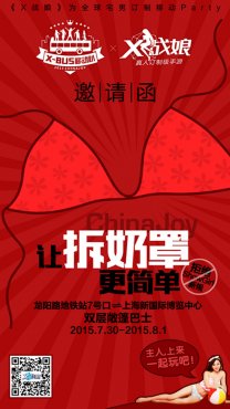 今年的ChinaJoy场内不让看胸,但场外呢?场内的规定毕竟管不到场外。《X战娘》专为宅男打造的游戏,在这个宅男灾难来临的时候挺身而出。对,当《X战娘》来临的2015年ChinaJoy将延续,不更加提升宅男福利的一场趴,一场全球首场宅男移动party。《X战娘》在此提到,这场party的意义之一就是“我们的目光不止两厘米”。