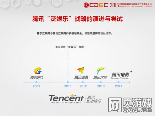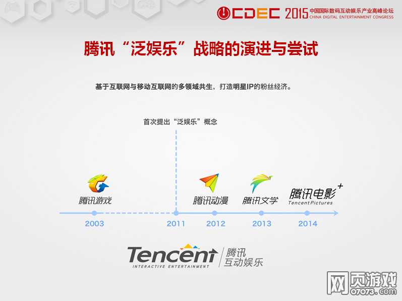 在过去几年中,由腾讯首倡的“泛娱乐”战略取得丰硕成果,“泛娱乐”一词也已成为全产业的整体共识和“标配”。现如今在“互联网+”的大潮下,“泛娱乐”更将迎来前所未有的发展机遇。值得一提的是,本次任宇昕先生的发言,也是腾讯在CDEC这个ChinaJoy2015同期最高规格的行业峰会中,首次对其“泛娱乐”战略进行全面公开的解读,具备产业风向标的重大意义。