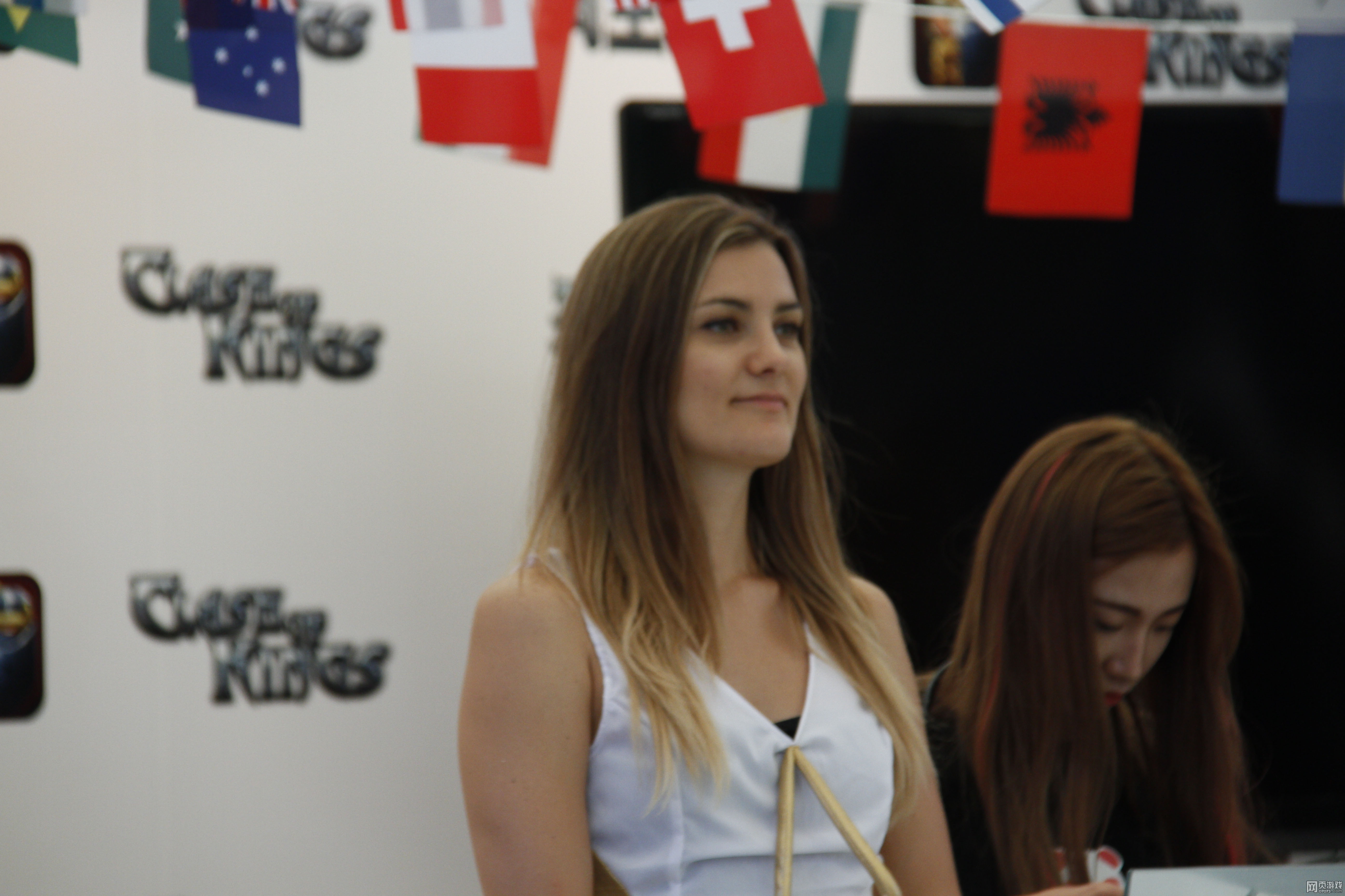 在列王的纷争E4展区,更让玩家们眼前一亮的是,游戏厂商为到场玩家邀请到了数位温馨甜美的ShowGirl。她们头戴花环、衣着白色长裙,在展台周边悉心疏导各位玩家,为玩家们送上饮用水,摆出各种可爱、甜美造型,与到场玩家热情互动。