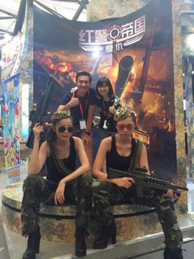 说起广州3k玩的展台,在B馆中属于比较反常规采用暗色要塞风格设计,旗下的SG都做一身飒爽军风打扮,整体风格比较偏向于TO C,而且展位推广策略也最为接近玩家。而在同业宣传方面,3k玩旗下职员同样不遗余力,积极拓展商务渠道进行良性洽淡,也是其本次参展打出玩家与同业双面兼顾特色的最大原因。