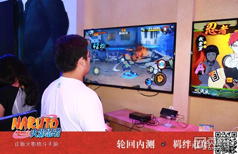 在CJ《火影忍者》手游试玩专区,玩家可以通过腾讯最新研发的微游戏机,连接55寸电视体验到游戏的最新版本。原本仅呈现在移动设备端的忍术格斗视觉体验移植到巨屏设备中,让华丽酷炫的忍术格斗在巨屏中绽放、爆发、震撼视听!我爱罗的风爆砂地狱、小李的表莲华、佐助的豪火球之术……试玩者每一次释放忍术造成酷炫的连打都引发了围观火影粉惊叹连连,试玩者直呼过瘾。有玩家称:火影手游战斗无论画面还是忍技都真实还原了原著,格斗连打呈现在巨屏之中更是极具诱惑力,就算排队几小时也要体验一把。